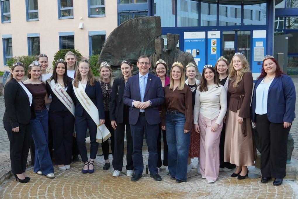 Wahrlich majestätisch ging es beim Empfang im Kreishaus zu: Landrat Thomas Barth hatte die Weinmajestäten und Repräsentantinnen aus den Kommunen und Weinanbaugebieten des Landkreises Mainz-Binge...