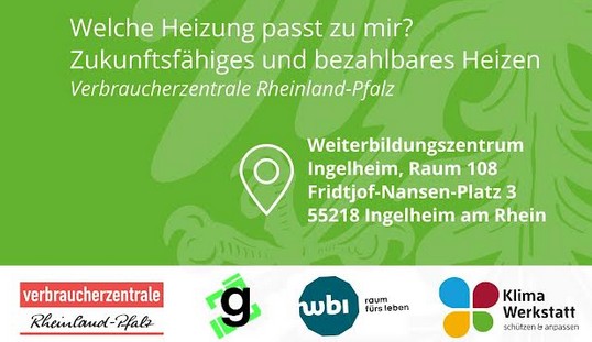 Die Stadt Ingelheim lädt am Montag, 26. Mai 2025, um 19 Uhr alle Interessierten zu einer Informationsveranstaltung zur kommunalen Wärmeplanung in Raum 108 im Weiterbildungszentrum (WBZ), Fridtjof-Nansen-Platz 3, ein.